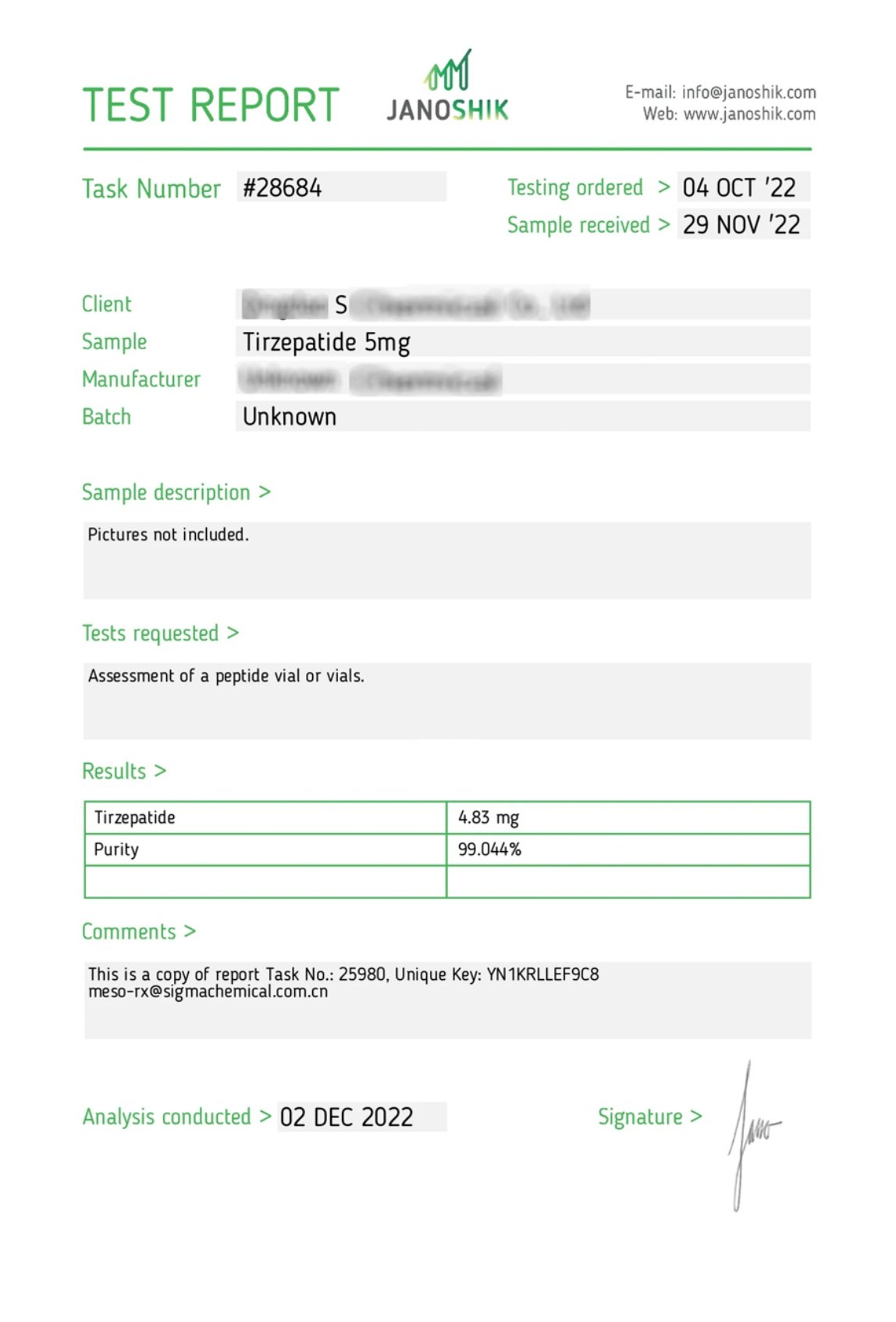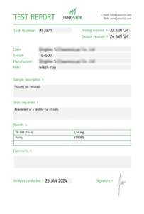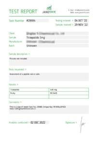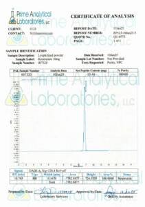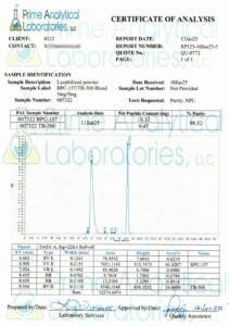 CERTIFICATES Home Certificates AOD-9064(5mg) BPC-157/TB-500 Blend 5mg/5mg GHK CU (73.70mg) Melanotan 2 (9.47mg) MOTS-C (5.04mg) Retatrutide (10mg) Semaglutide (5.27mg) Semaglutide (10mg) TB-500 (TB-4) (6.54mg) Trizepatide (5mg) Trizepatide (10mg) Trizepatide (30mg)